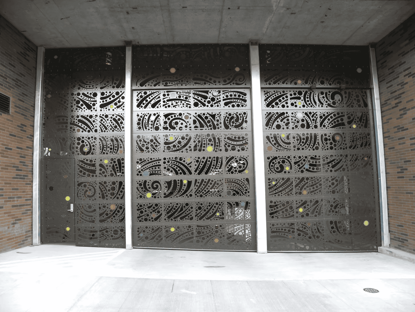 Sections can be sheeted with expanded or perforated aluminum for ventilation and visibility, or with a solid material.